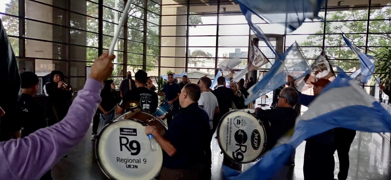 En una nueva jornada de acción gremial, la Unión de empleados de la Justicia de la Nación desplegó un cesé de actividades, en todo el país, por un lapso de 36 horas. En la regional 9 la medida comenzó el día jueves 08 de mayo desde las 10:00 hs. con un Banderazo en Córdoba en la Torre de Tribunales Federales (en las delegaciones del interior fuera de cada dependencia) y se extiende por todo el día viernes 09 del corriente mes.