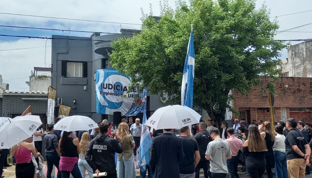 La medida fue encabezada por Julio Juan Piumato y Juan Pablo Tripputi -Secretario General Nacional y Secretario General de la Regional 9-, la cual fue acompañada por cientos de judiciales.