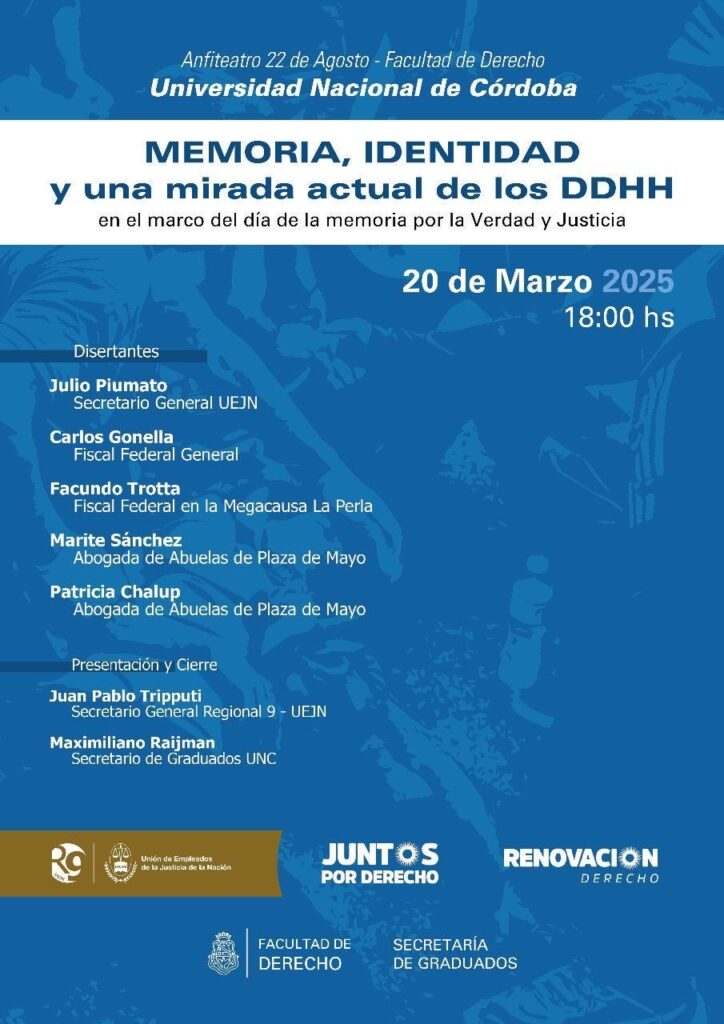 La cita es el 20 de Marzo a las 18 horas en el Anfiteatro 22 de Agosto – Facultad de Derecho – UNC.