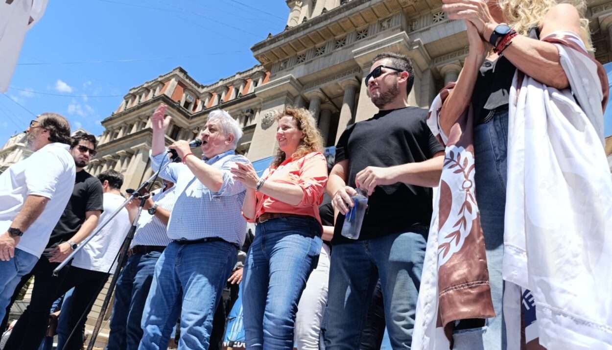 El acto fue encabezado por Julio Juan Piumato, Secretario General de la UEJN quien en su discurso rechazó el ajuste del gobierno nacional y confirmó dos nuevos paros nacionales en todo el país para los días 13 y 20 de diciembre.