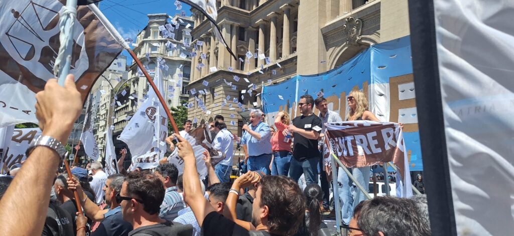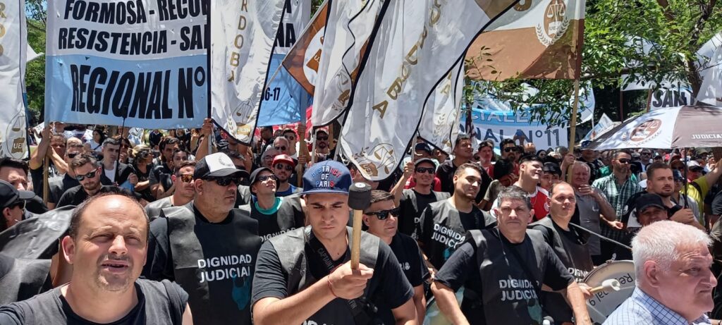 El jueves pasado la Unión de Empleados de la Justicia de la Nación realizó una contundente movilización frente al Palacio de Justicia ubicado en CABA para exigir la urgente recomposición salarial, donde la perdida del salario supera el 25% en el 2024.